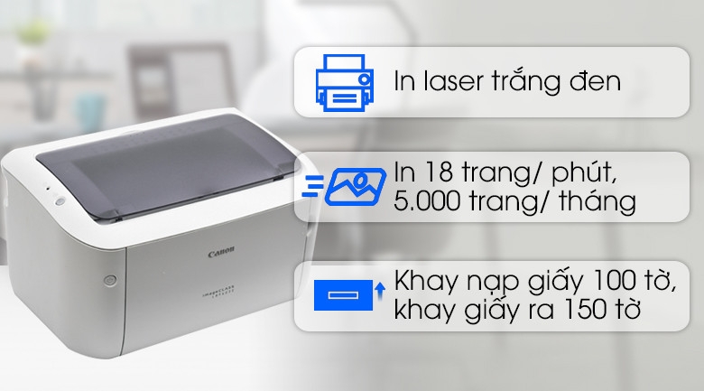 Máy in Laser Canon LBP 6030 với kiểu dáng đơn giản, kích thước nhỏ gọn sẽ giúp bạn tiết kiệm không gian sử dụng, thích hợp đặt cho góc làm việc, văn phòng nhỏ,...